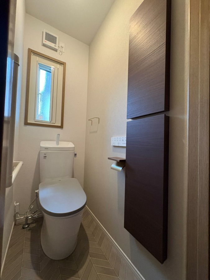 設備はLIXILのアメージュ便器とシャワートイレVA(ノーブルグレー)を採用し、見た目だけでなくお手入れのしやすさや節水性にも配慮しています。