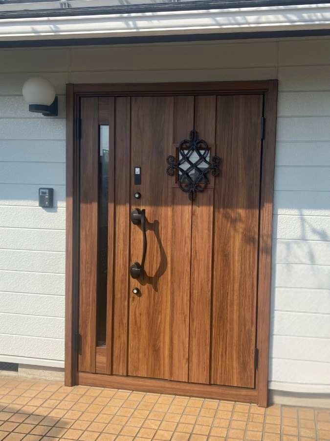 ホーム フォトギャラリー 【 新築 ・増築 ・リフォーム 】 すべて 木目の玄関ドアが映えるエントランス 木目の玄関ドアが映えるエントランス 岐阜市K様邸|LIXILリシェント玄関ドアで整えた玄関ドアリフォーム 【 新築 ・増築 ・リフォーム 】|すべて 長年使われてきた木製の玄関ドア。横板デザインの落ち着いた雰囲気ですが、経年による色あせや表面の傷みが少しずつ目立つようになり、玄関まわりの印象を整えたいとご相談をいただきました。住まいの「顔」となる玄関を、より明るく心地よい印象にしたいというのが今回のリフォームのきっかけです。画像のみを表示全 3 枚中 1 枚目を表示Next ≫ 玄関ドアは LIXILリシェント玄関ドア を採用。これまで使われていた木製ドアの雰囲気を大切にしながら、耐久性に優れた玄関ドアへとリフォームしました。アルミ製でありながらリアルな木目の質感が美しく、住まいの外観にも自然に調和。長く安心して使える玄関ドアとして、見た目の印象とメンテナンス性の両方を整えたリフォームとなりました。画像のみを表示全 3 枚中 2 枚目を表示≪ Prev|Next ≫ 玄関ドアの中央には、印象的な鋳物装飾があしらわれています。木目の温かみとアイアンの質感が調和し、落ち着きのある上品な玄関デザインに。ハンドルは曲線が美しく、手に馴染みやすいアーチ型を採用しています。鍵には LIXILのファミロック(タグキー) を採用し、バッグに入れたまま施解錠できる便利さと、防犯性にも配慮。見た目の美しさと使いやすさの両方を大切にした玄関ドアです。画像のみを表示全 3 枚中 3 枚目を表示≪ Prev この住まいのリフォームの詳しい内容は施工事例ページでご紹介しています。 ▶ K様邸の玄関ドアリフォーム施工事例を見る 玄関ドアリフォームや住まいのご相談は岐阜の工務店 ざいまん建設までお気軽にどうぞ。▶ 無料相談はこちら 一覧へ戻る 【 新築 ・増築 ・リフォーム 】 すべて 自由設計の家 板倉の家 OMソーラーの家 リノベーション 水まわり 玄関ドア 外装・外構リフォーム