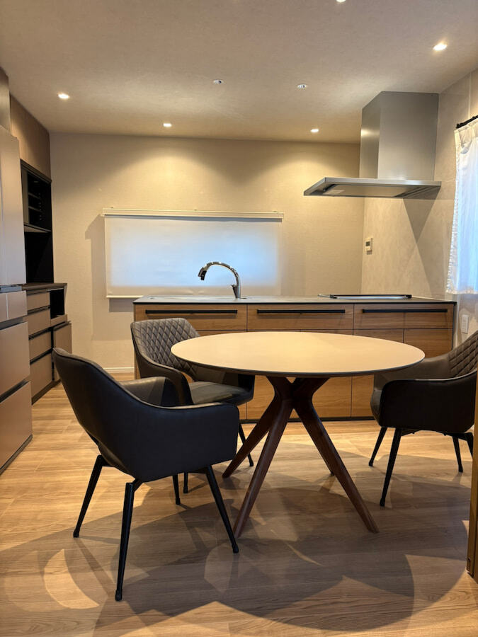 ダウンライトの配置や動線まで丁寧に整えたことで、機能性と心地よさを兼ね備えたキッチンダイニングが完成しました。