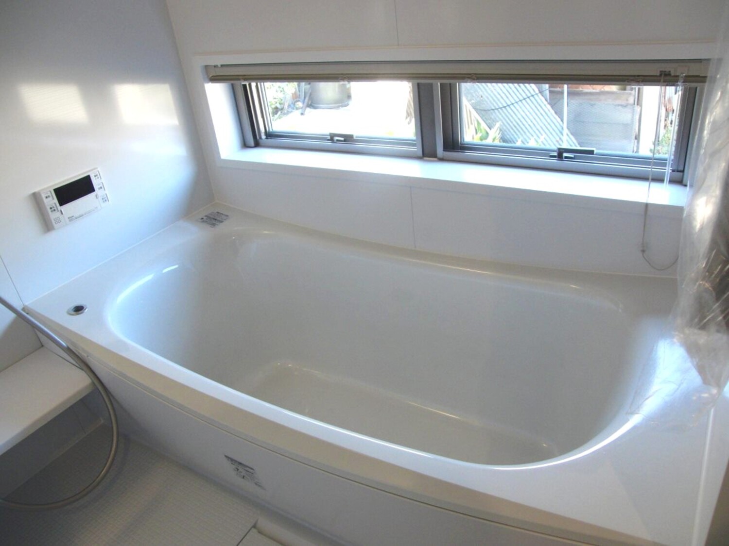 ブラインドで光と視線を調整しながら、落ち着いて過ごせる心地よいバスタイムを実現しています。